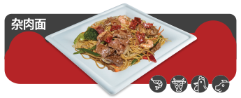 Pastas especiales con carne de res, cerdo, camarón pollo cebolla a la juliana y salsa teriyaki. |