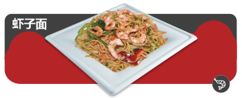 Pastas especiales con camarones y vegetales en salsa Long Hang. |